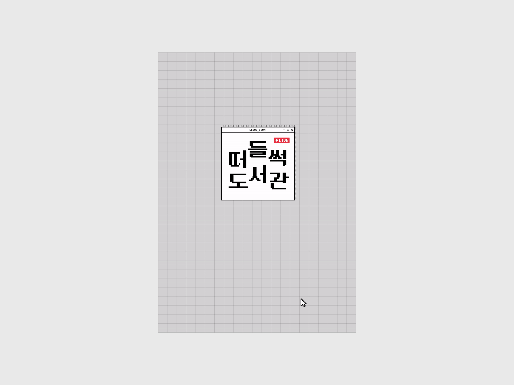 지식과 문화의 플랫폼인 도서관의 미래의 모습과 역할을 고민하고, 새로운 도서관 모델에 대한 실험을 해보자는 취지의 도서관 축제입니다. 코로나19 확산으로 2020년에는 온라인으로 행사를 진행했습니다. 디지털의 느낌을 주는 윈도우 창, 픽셀 이미지와 표정을 담은 아이콘을 활용하여 시각디자인 및 굿즈를 제작하였습니다. 온라인으로 활발 하게 대중과 소통하며 새로이 도서관과 시민의 접점을 만듦으로써 미래 도서관의 가능성 탐색의 기회를 마련했습니다.