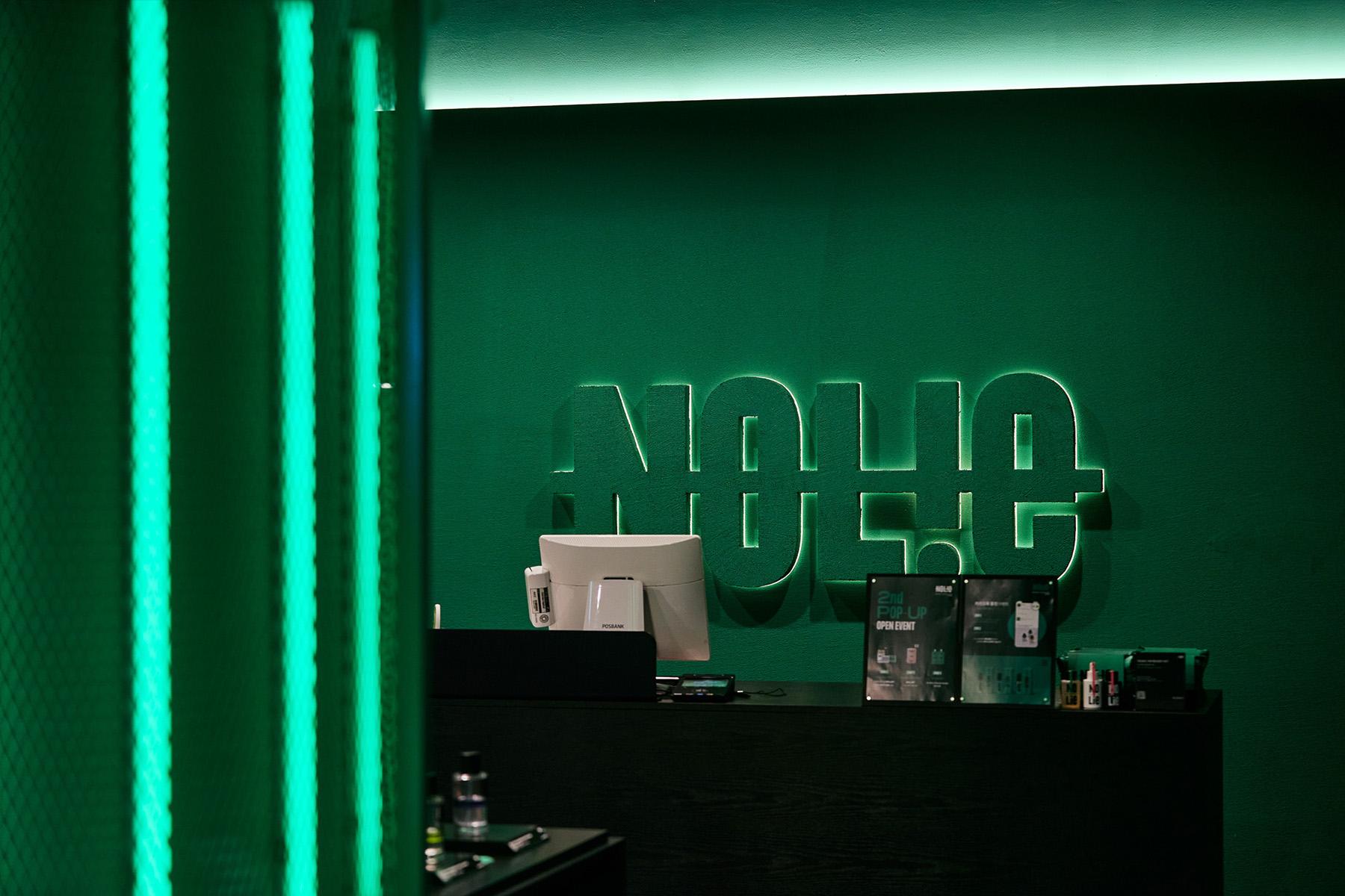 센슈얼 웰니스 브랜드 노우라이(NOLIE)의 두 번째 팝업스토어입니다. 첫 번째 팝업스토어에서 선보인 키 컬러 ‘그린’을 극대화한 네온 조명 구조물과 스페셜 도장으로 벽면 질감에 차별화를 두는 등 다양한 소재 마감과 제품 연출로 더욱 강력한 브랜드 아이덴티티를 공간에 연출했습니다.