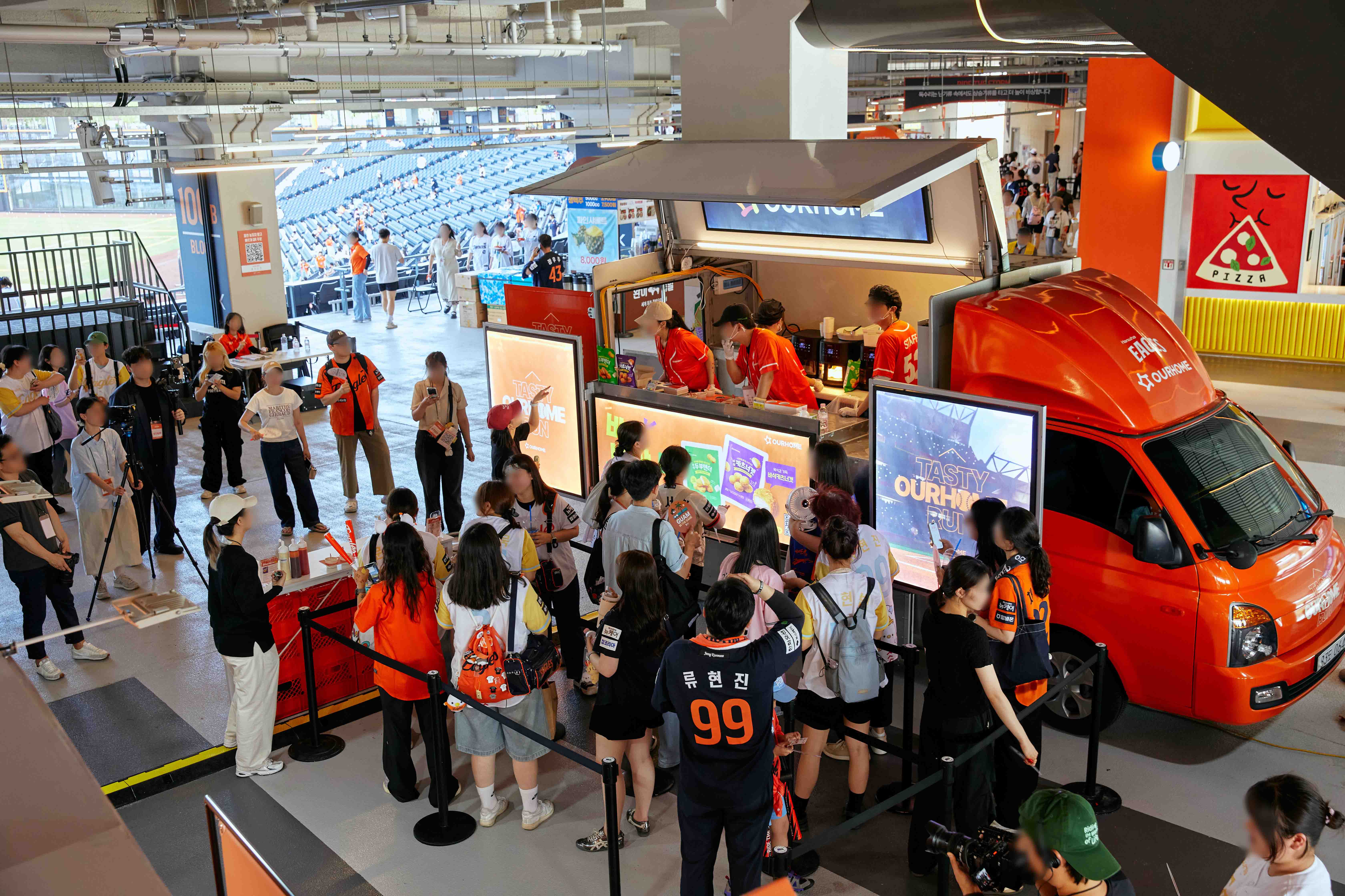 아워홈 'TASTY OURHOME RUN'은 야구장에서 영감을 받아 한화이글스와의 첫 협업을 테마로 한 오프라인 프로모션을 선보였습니다. 푸드트럭을 활용한 HMR 시식 부스와 벨크로 공 던지기 게임, 콜라보 굿즈 등 포토제닉 요소로 브랜드 컨셉을 시각화했으며, 유동 인구가 많은 동선에 배치해 높은 체험률과 브랜드 노출 효과를 달성했습니다.