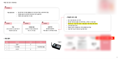 스텝 상세 업무, 응대 메뉴얼, 운영 스크립트등