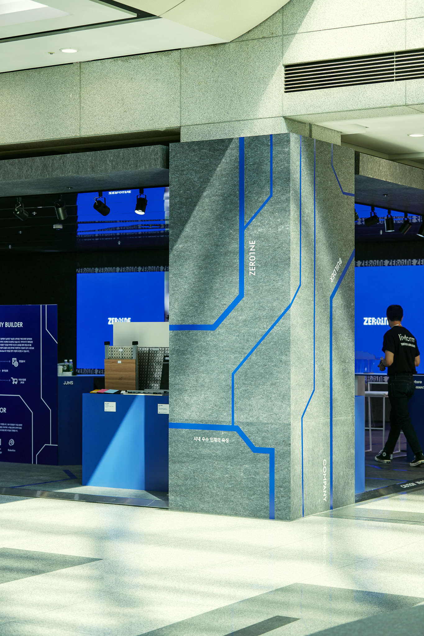 제로원의 아이덴티티를 전체 디자인에 적용하여 통일감을 주었습니다. 라인 디자인을 통해 스타트업 개별 조닝 형성을 하여 전시 공간에 브랜드의 연속성을 부여했습니다.