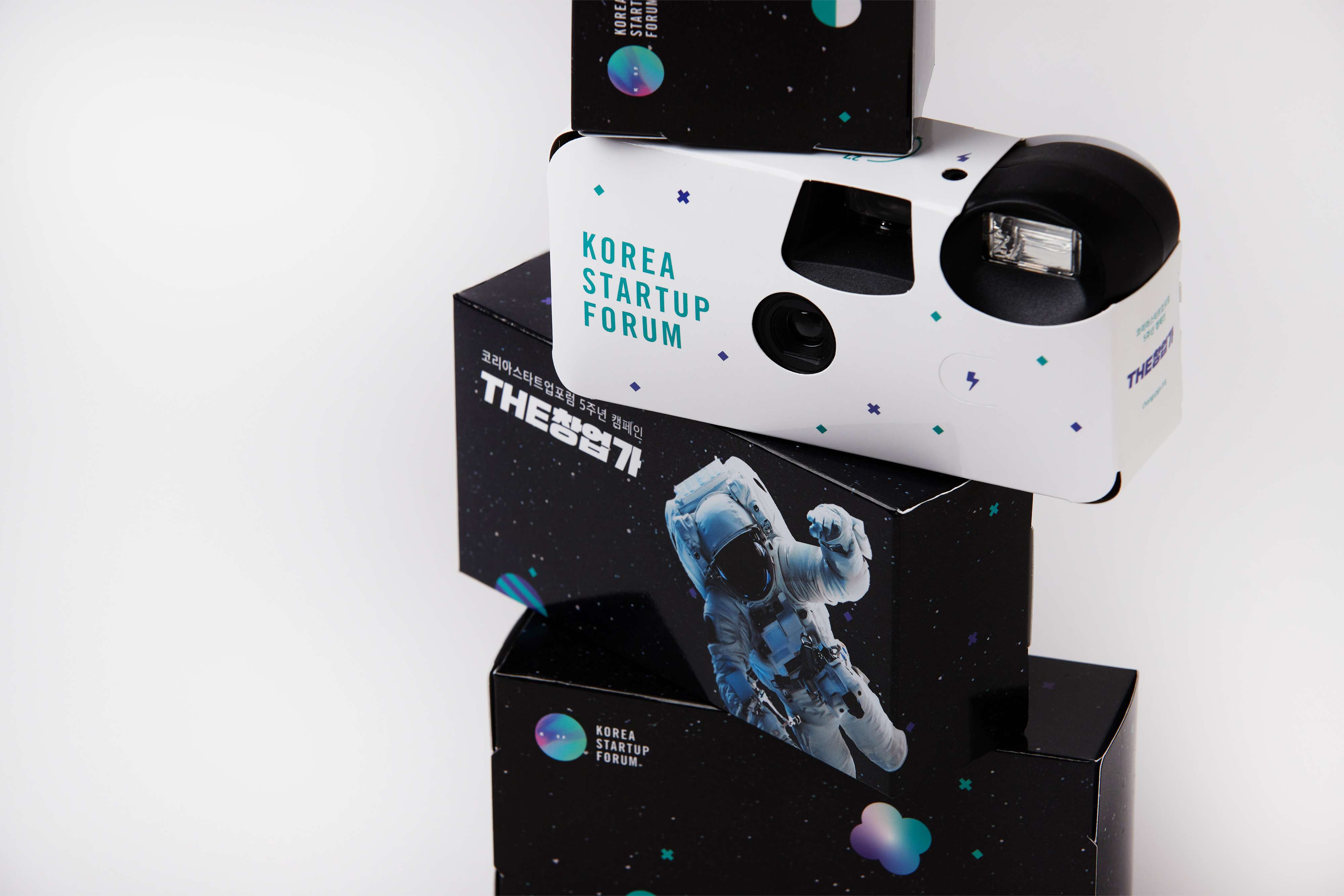 코리아스타트업포럼 출범 5주년을 기념하는 캠페인 ‘THE창업가’의 시각물과 굿즈를 디자인 및 제작했습니다. 더창업가 BI를 강조하는 레이아웃과 우주 배경 실사 이미지를 통해 컨셉을 직관적으로 구현했습니다. 키 컬러를 활용하여 제작한 그래픽 요소들은 게더타운, 웹 시각물, 굿즈 등을 다양하게 베리에이션하여 사용할 수 있도록 제작했습니다.
