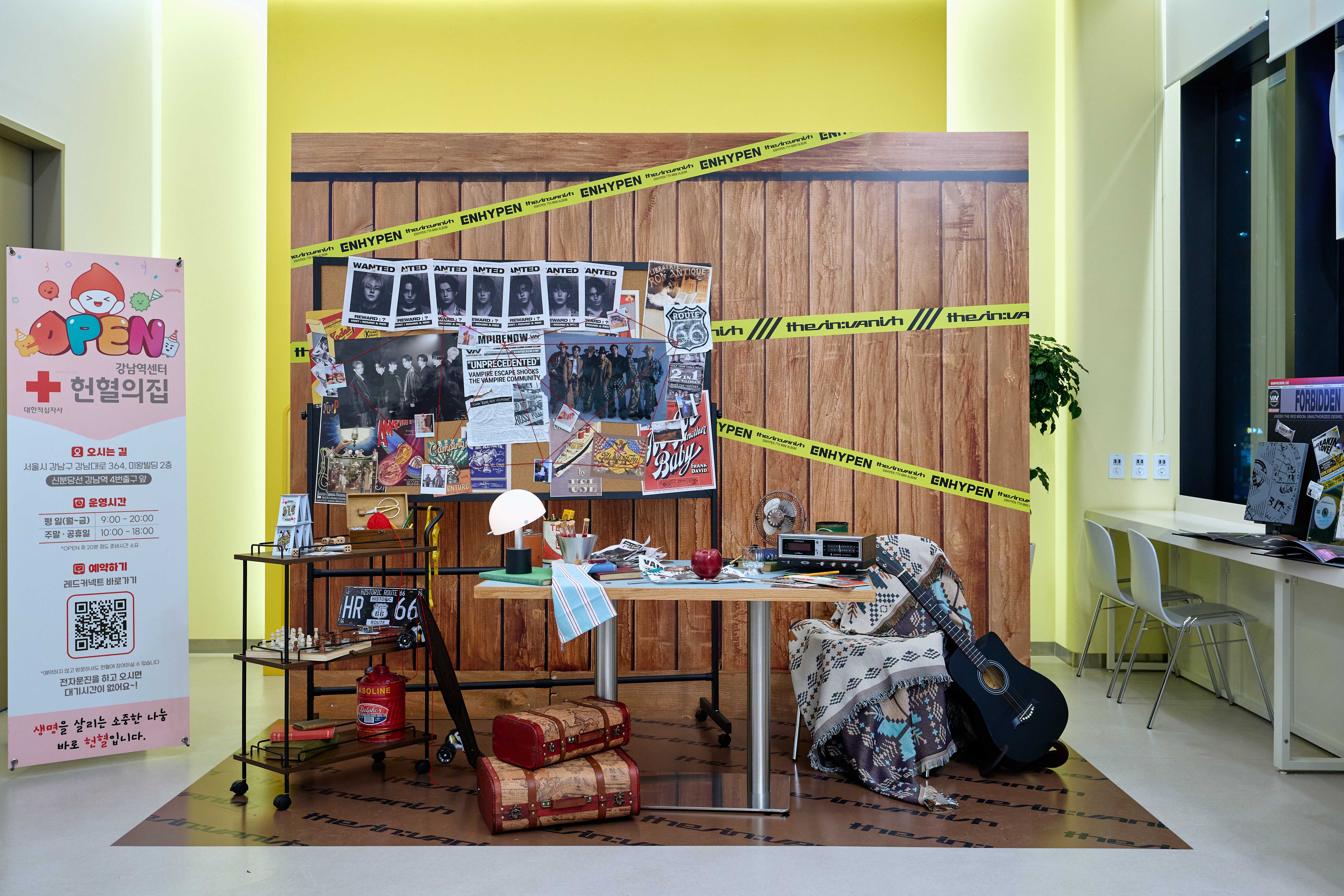 엔하이픈 7집 수록곡 ‘Big Girl Don’t Cry’ 뮤직비디오를 모티프로, 아메리칸 웨스턴 스타일의 가구와 소품을 활용해 감각적인 공간을 구현했습니다. 기존 헌혈의 집 업무 동선을 방해하지 않으면서도 지점별 특성에 맞춘 포토월과 전시 공간을 전략적으로 배치했습니다. 단순한 장식을 넘어 팬들이 아티스트의 음악적 분위기를 온전히 경험하며 헌혈에 참여할 수 있도록 설계와 시공 전반을 총괄했습니다.