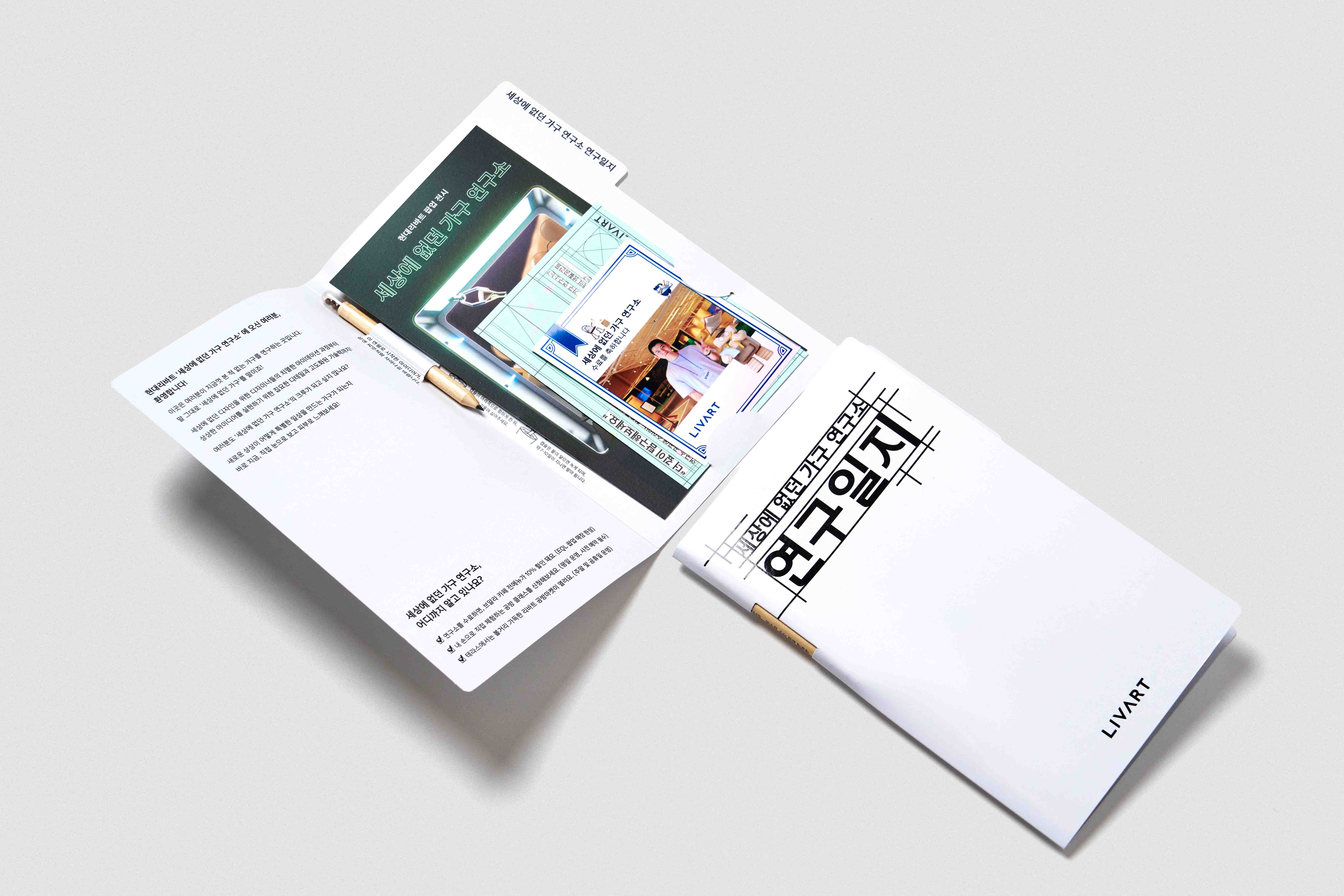 성수동에서 열린 리바트 팝업스토어의 시각 디자인을 담당했습니다. '가구 연구소' 콘셉트에 맞춰 각 공간의 시각 요소를 기획·디자인하고, 팝업에서 제공되는 리플렛과 GWP도 '연구일지' 콘셉트로 제작해 방문객이 팝업 경험을 직관적으로 느낄 수 있도록 구성했습니다.