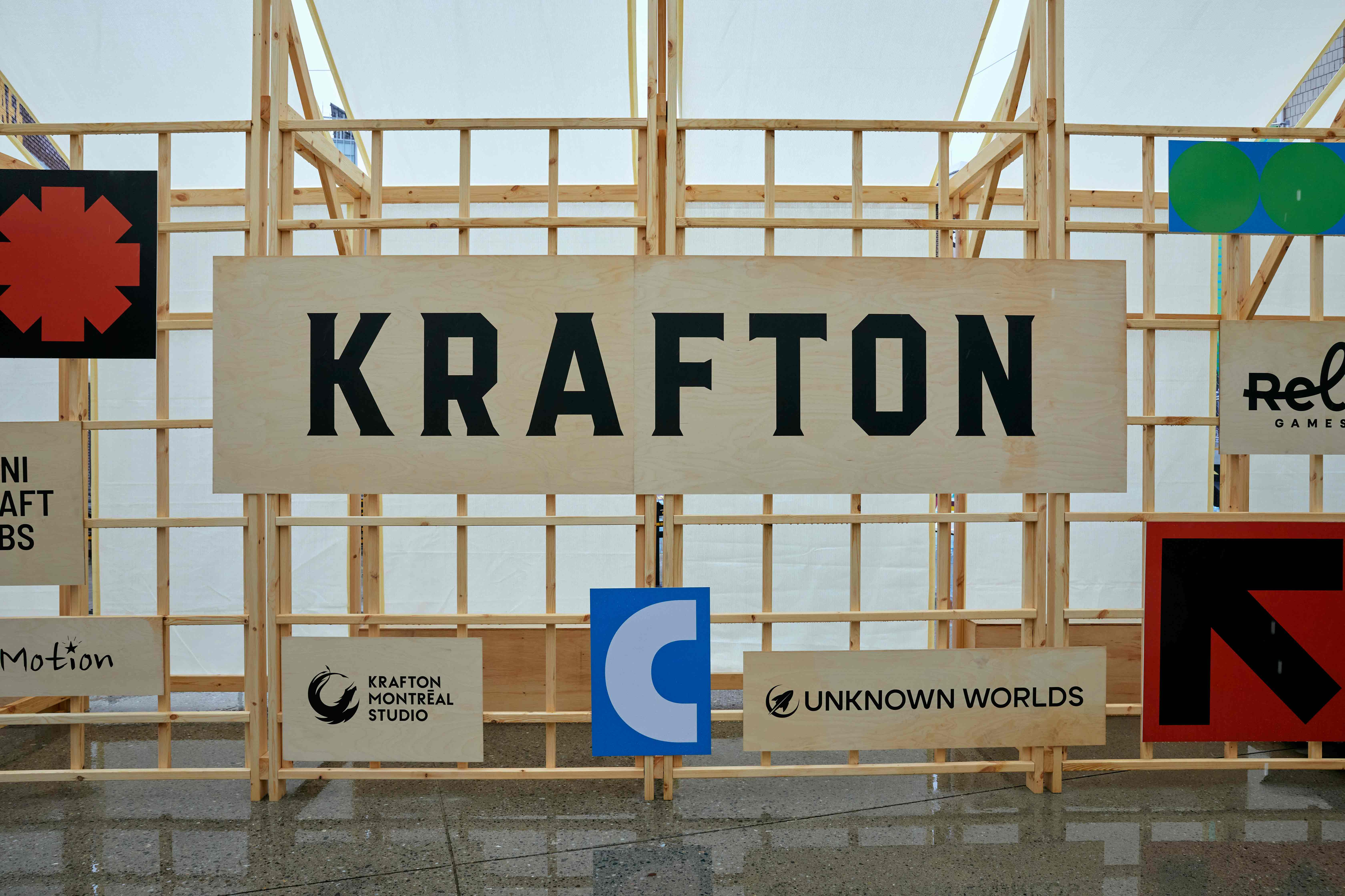 크래프톤 KDCW 2025의 공간 디자인은 행사 브랜딩을 기반으로 임직원들의 일체감 있는 경험을 제공하고자 기획되었습니다. 펍지 성수 입구에 대형 목조 게이트를 설치하고, 통과 동선을 따라 크래프톤 산하 브랜드 로고를 배치하여 소속감을 자연스럽게 고취했습니다. 게이트 외부의 마그넷 월은 임직원들이 직접 참여하며 교류할 수 있는 체험 요소를 마련했습니다. 공간 전반에 걸친 브랜딩은 크래프톤의 아이덴티티를 명확히 강조하며, 활발한 교류의 장을 마련했습니다. 이러한 공간 구성은 모든 임직원이 함께 즐기고 소통하며 유대감을 강화하는 데 크게 기여했습니다.
