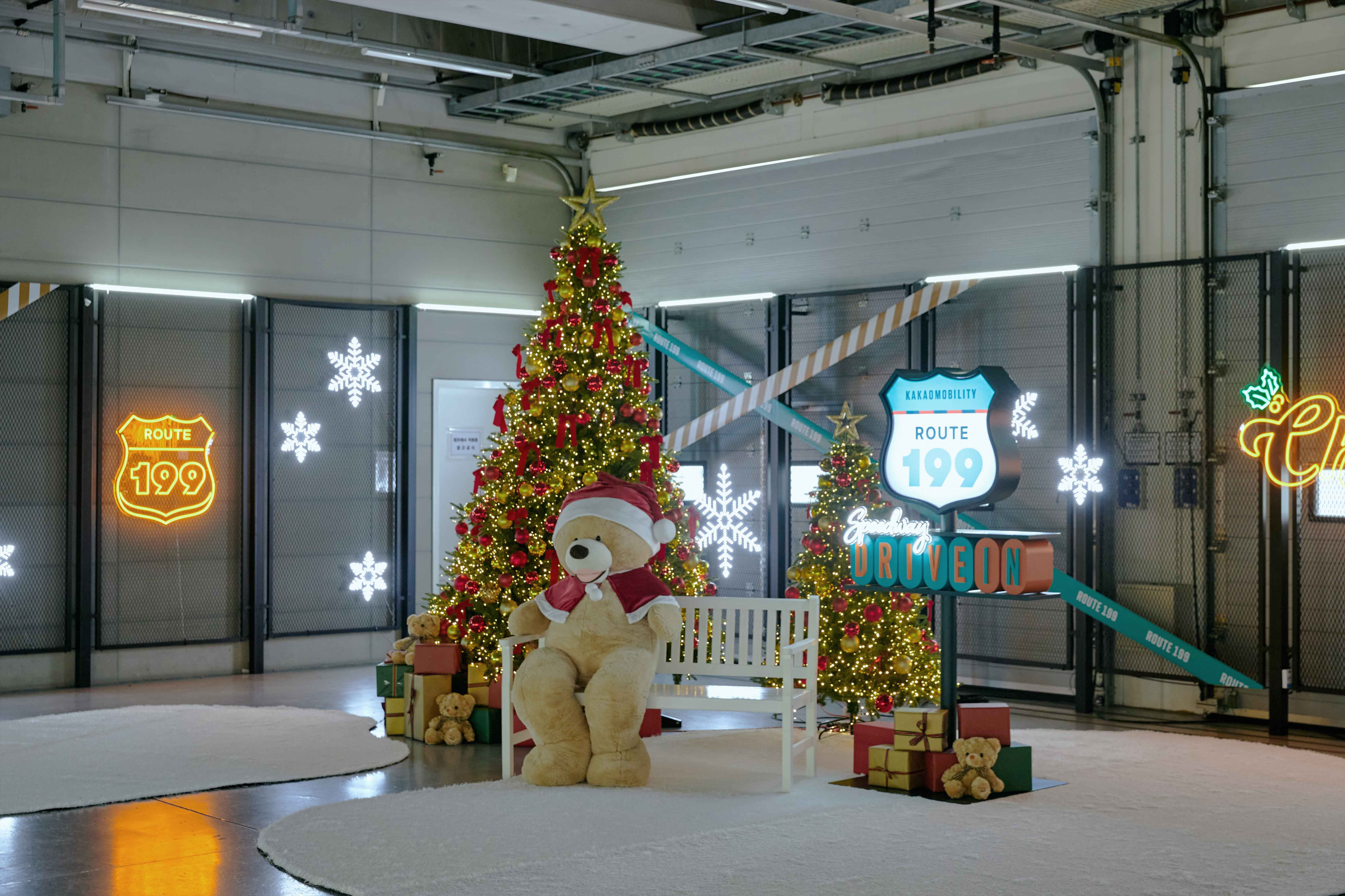 카카오 모빌리티와 에버랜드의 파트너십을 기념하는 크리스마스 이벤트의 공간 연출을 맡았습니다. 에버랜드 서킷의 레이싱 무드를 살리기 위해, 역동적이고 거친 이미지를 강조한 디자인을 전개했습니다. 발판과 철제 펜스를 주 소재로 활용해 주차장의 거친 분위기를 표현했으며, 직선적인 조명을 구조물에 다양한 형태로 연출해 입체감을 더했습니다. 각 콘셉트에 맞게 디테일을 추가하여 레이싱 관련 프로그램과 공간이 자연스럽게 어우러지도록 했습니다. 이를 통해 방문객들에게 레이싱 테마의 몰입감 있는 경험을 제공하고, 공간의 에너지를 극대화했습니다.