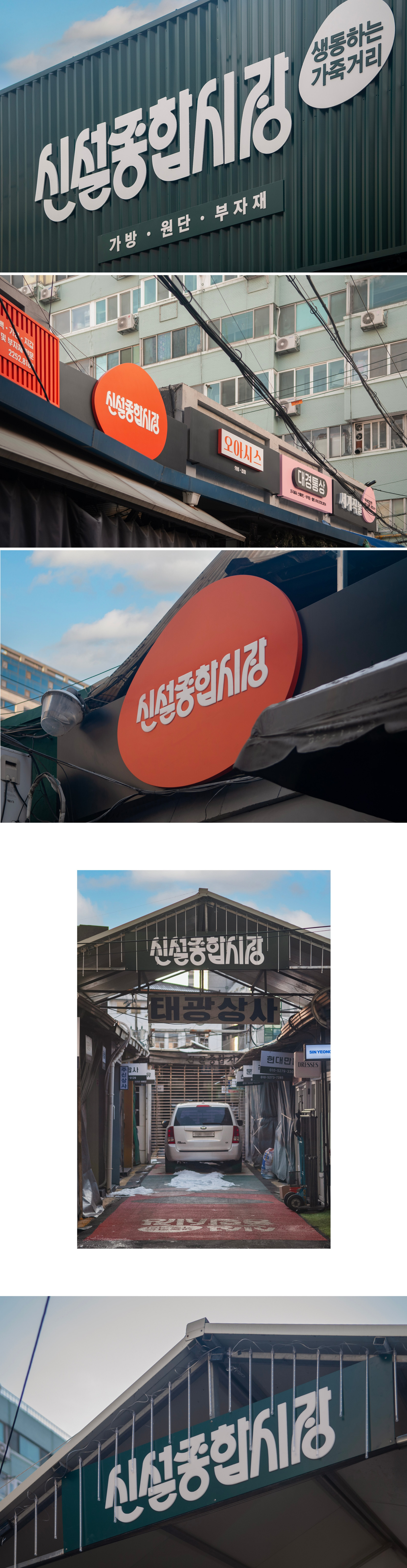 신설종합시장의 산업적 정체성을 재정립하고, 시장 환경 개선과 상권 활성화를 통합적으로 구현하기 위한 리브랜딩 프로젝트를 진행했습니다. '살아있는 가죽거리'라는 방향성 아래 점포·상인·고객을 유기적인 조각으로 정의하고, 이들의 연결과 순환을 핵심 개념으로 브랜드 시스템을 구축했습니다. 브랜딩 중심의 초기 기획을 통해 시장의 구조와 확장 가능성을 정리하고, 이를 기반으로 간판 개선과 환경 디자인, 프로그램 운영이 하나의 브랜드 경험으로 이어지도록 설계했습니다. 가죽이라는 산업 자산을 현대적으로 재해석한 그래픽 모티프와 컬러 시스템을 적용하고 참여형 요소를 통합해, 시장의 자산을 공간 경험과 운영 전략으로 확장한 통합형 리브랜딩 사례입니다.